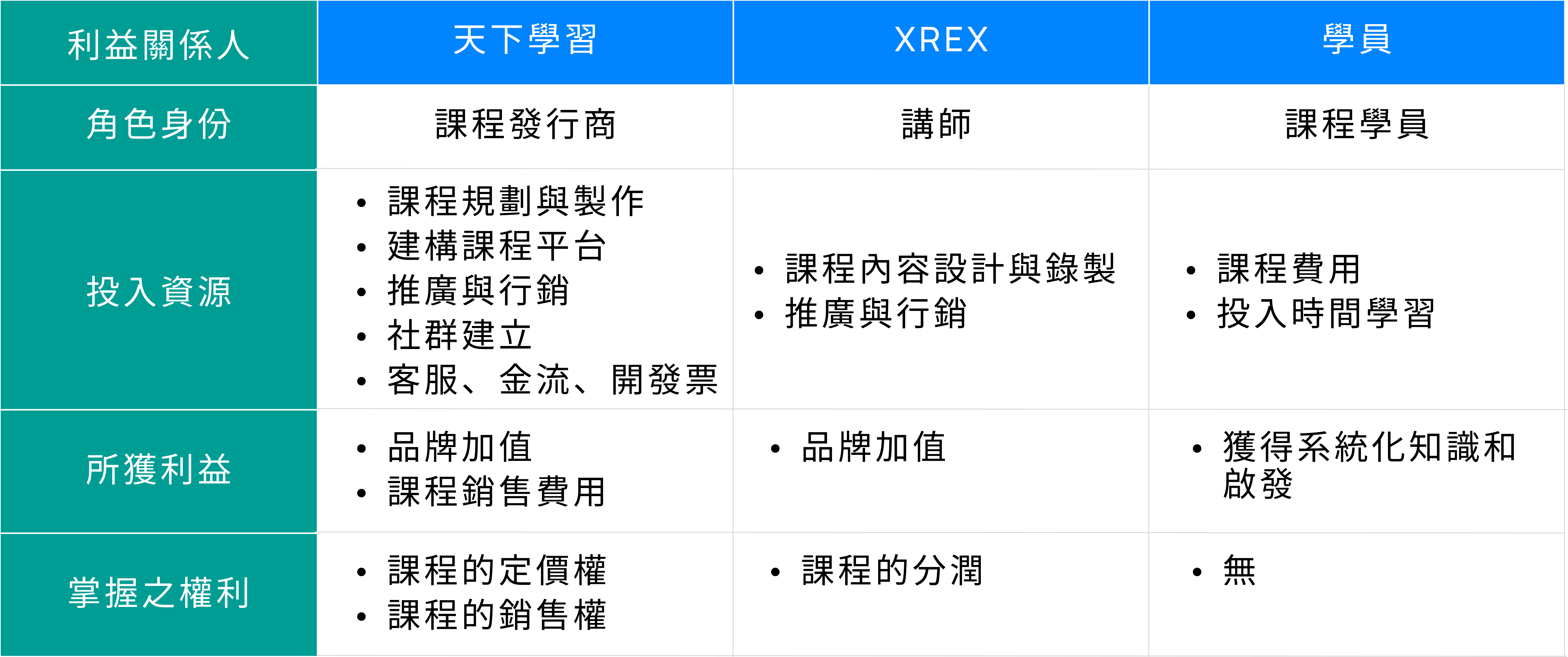 觸及更廣大的學員群 天下學習一直是台灣前兩千大企業高階經理人最信任的媒體之一,XREX 則是極具信譽的區 塊鏈新創。然而,除了天下學習與 XREX 所能觸及的族群外,天下學習也希望藉由建立 Web3 社群,而能借由學員觸及更廣大的學員群,擴大課程的影響力。